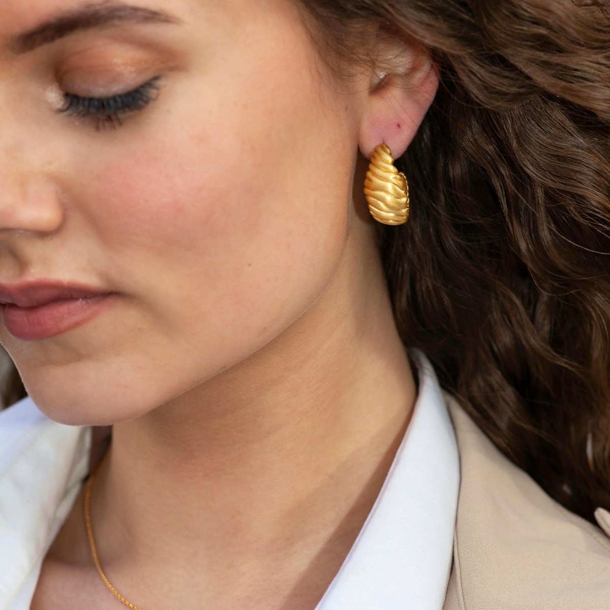 Dunes Hoops Large er en imponerende tilføjelse til den smukke Dunes kollektion, som er inspireret af naturens bølgende sandbanker. Med deres større størrelse fanger disse øreringe essensen af både Danmarks fortryllende kyster og ørkenens mystiske vidder. De bløde, flydende former i designet minder om vindens dans over sandet, og de giver et markant, men elegant udtryk, der vil løfte ethvert look.