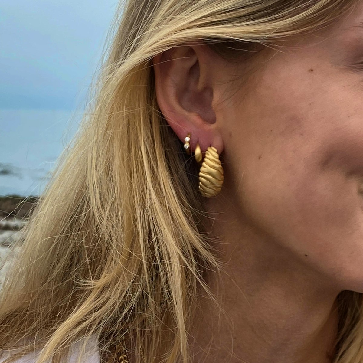 Den fremtrædende størrelse gør Dunes Hoops Large til et statement-piece, der er skabt til at blive lagt mærke til. Øreringene er både sofistikerede og naturlige, og de reflekterer den tidløse skønhed, som findes i naturens former. Perfekte til både dag og aften, kan disse hoops bæres alene for et stilfuldt, minimalistisk look eller kombineres med andre smykker for en mere iøjnefaldende stil. Med deres bølgende design og markante størrelse vil Dunes Hoops Large tilføre en subtil styrke og elegance til din smykkesamling, der både emmer af luksus og naturlig skønhed.