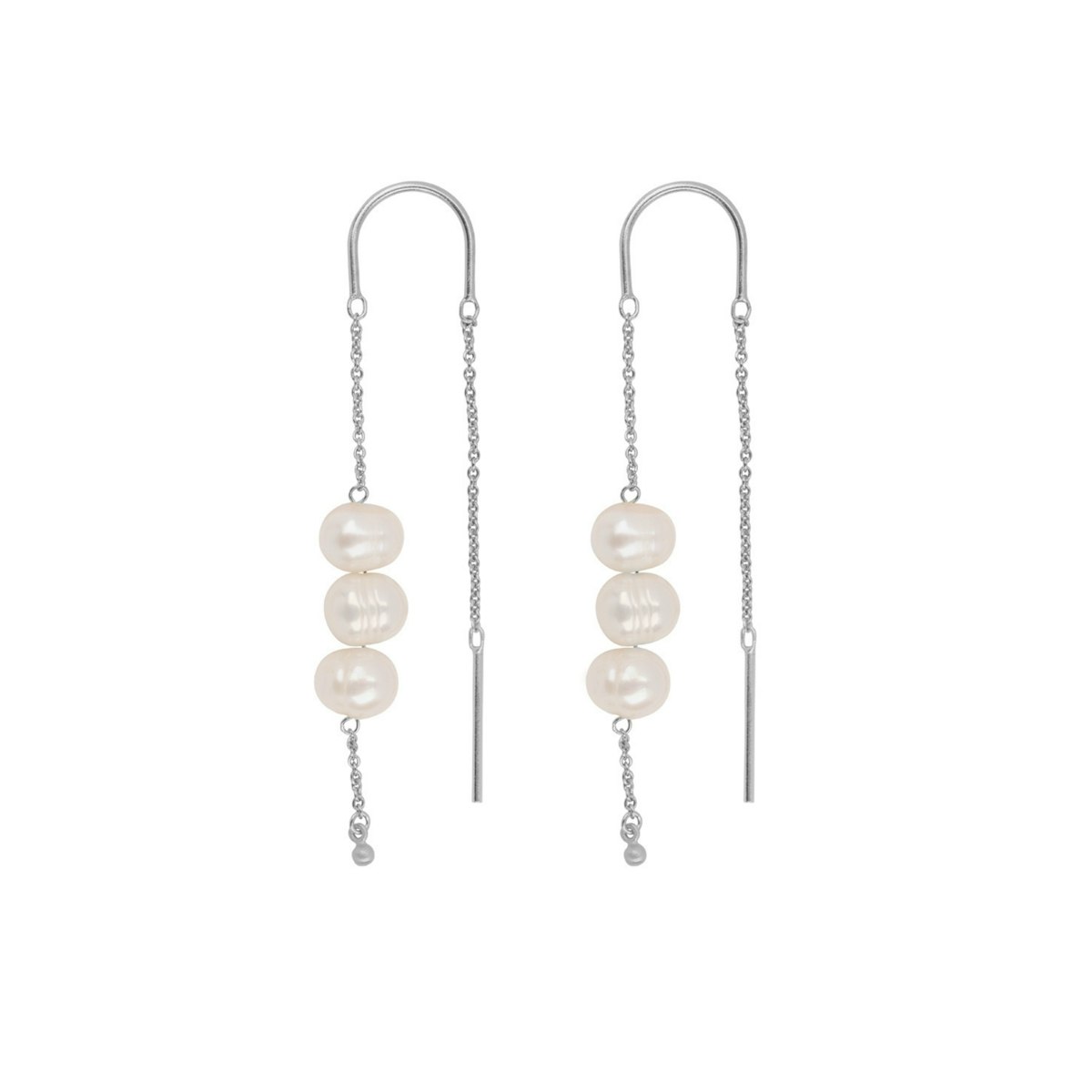 Emily Strings øreringene er designet til at imponere med deres lette og luftige udtryk. De gyldne kæder, der elegant holder hver perle, skaber en illusion af, at perlerne svæver, hvilket tilfører et strejf af sofistikeret skønhed. Den varme guldtoning i det forgyldte sølv eller den klassiske glans af sterlingsølvet harmonerer smukt med de bløde, hvide nuancer af perlerne og skaber en elegant balance.