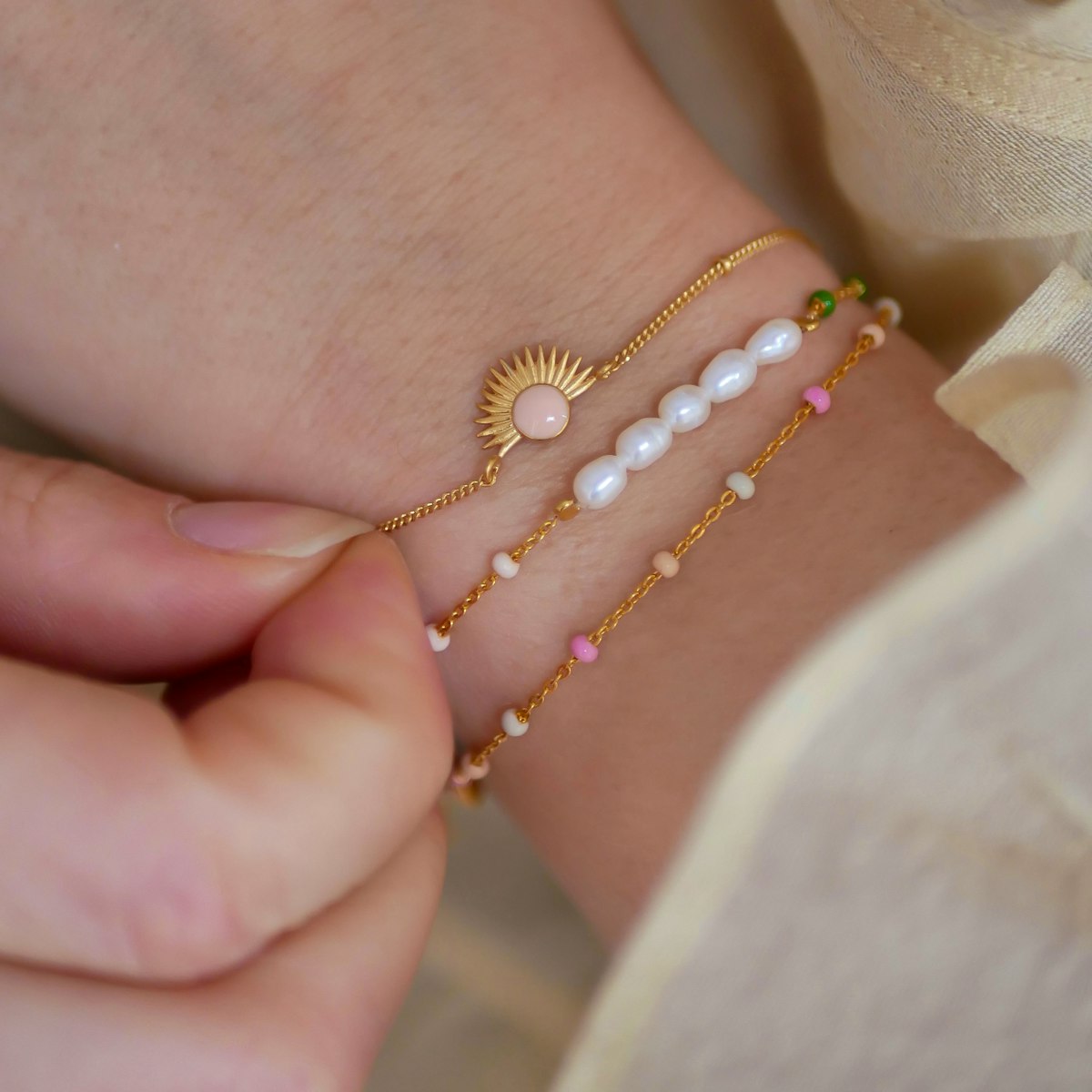 Lola Bracelet er fint og stilsikkert armbånd der giver dig sommerlige følelser. Armbåndet har en farvekombination af varme og friske nuancer der er iøjenfaldende og let kan kombineres med andre armbånd.