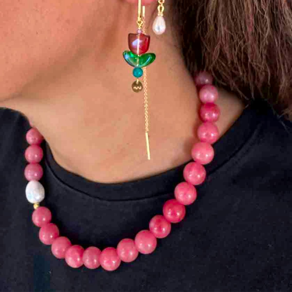 Hos A-Hjort håndplukker vi smykker, der taler til både æstetik og ansvarlighed – og denne halskæde er ingen undtagelse. Den er skabt til kvinder, der værdsætter farve og form, men som samtidig går op i materialer, håndværk og en bæredygtig tilgang til mode.