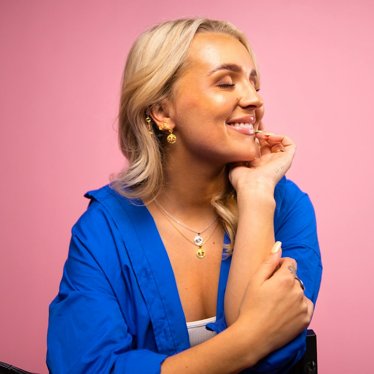 Det gennemgående design tema i Hanna Martine x Sistie kollektionen er det fine lille lyserøde øje som, symboliserer øjnene af de kvinder i Hanna Martines liv, som hun beundrer mest. "Disse øreringe er til ære for min mor Camilla" - Hanna Martine