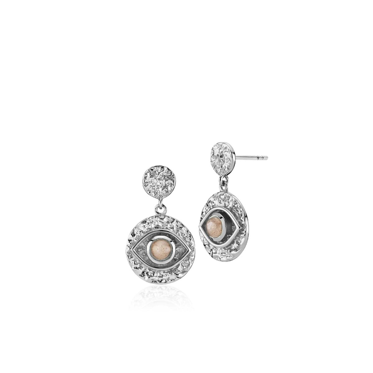 Smykkerne kan bruges til alt, både hverdag og fest. De sætter lige det ekstra pift på dit outfit og stil. Stenen i øreringen er en peach moonstone.