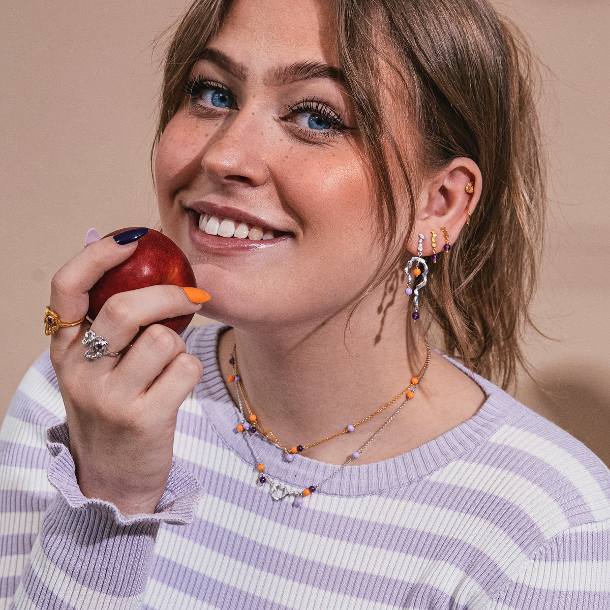 Kollektionen består af øreringe, ringe og halskæder fremstillet i guldbelagt genbrugssølv og rhodiumbelagt genbrugssølv.