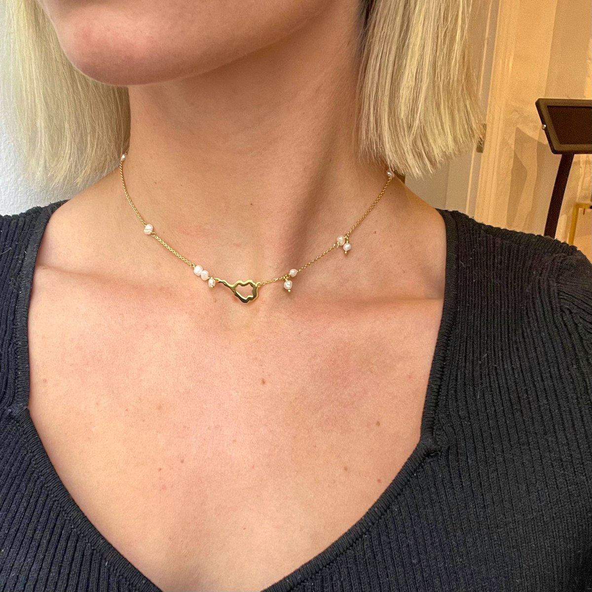 Super søde og unik halskæde fra Lærke Bentsen med hvide ferskvandsperler