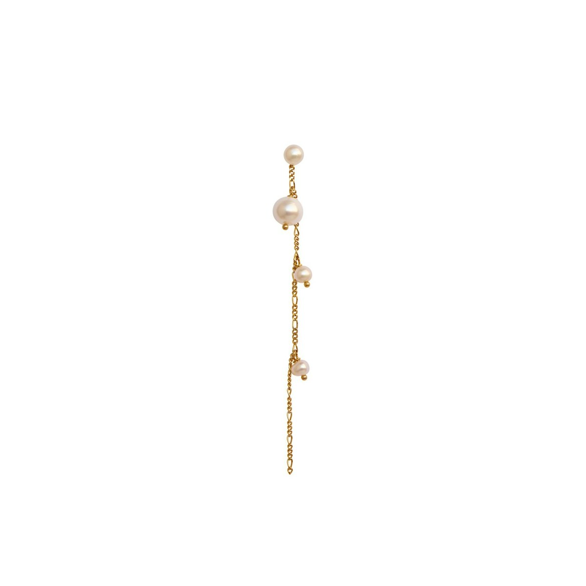 Skapa en elegant och livfull look med detta vackra långa pärlörhänge från STINE A Jewelry. Örhänget är tillverkat i 18 karat guldpläterat 925 sterlingsilver och dekorerat med en fin kedja där små och stora runda sötvattenspärlor dansar lätt och elegant längs den enkla kedjan. Kombinationen av de naturliga pärlorna och den smidiga kedjedesignen ger örhänget en lyxig och feminin look som fångar ljuset och ger rörelse åt din look.