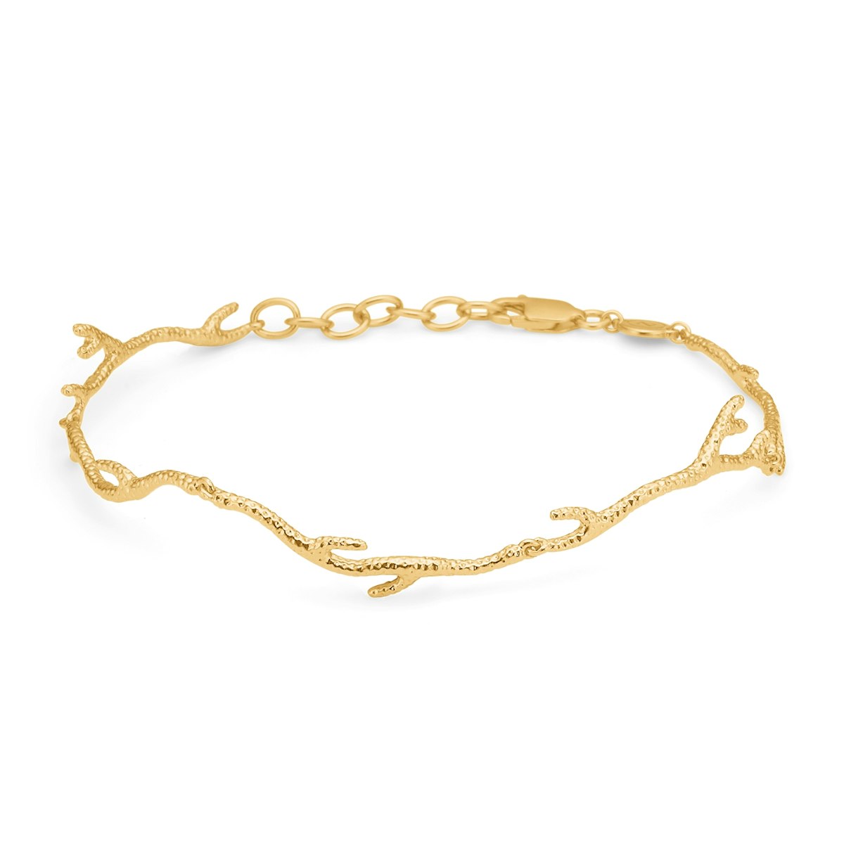 Armbåndet er en del af Studio.Z’s Treasure the Sea kollektion, som er kendt for at kombinere moderne formsprog med inspiration fra havets undervandsunivers. Reef Essence er udført i 925 ren sterlingsølv og belagt med en slidstærk 18 karat guldforgyldning, hvilket giver smykket både en eksklusiv finish og lang holdbarhed. Den justerbare længde på 16,5 + 2,5 cm sikrer en perfekt pasform til alle håndled, uanset om du ønsker et løst eller tættere fit.