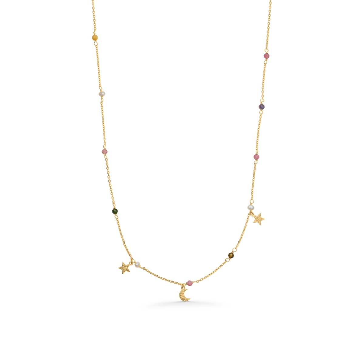 Starlight halskæden er ideel til lag-på-lag styling og kan kombineres med Starlight Earrings og Starlight Bracelet for et fuldendt, drømmende sæt – eller bæres alene som et blikfang i sig selv.
